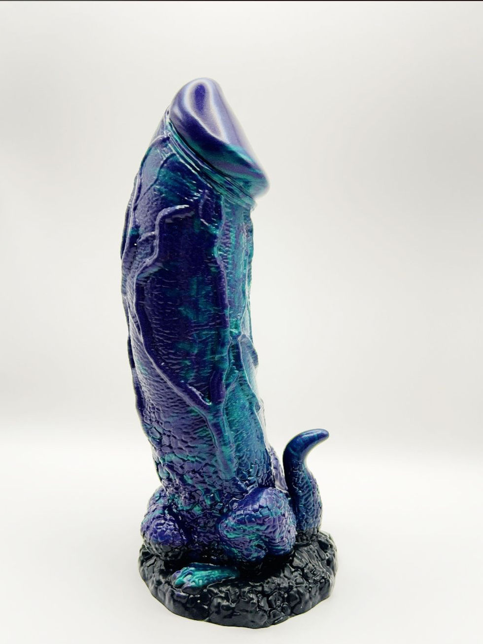 Con hermosos y brillantes azules, negros, púrpuras y verdes, ¡este Dino Dong está a punto de eclipsar a tus otros juguetes! Con una enorme cabeza en forma de seta, ¡disfrutarás cada vez que lo introduzcas! El eje curvado tiene venas prominentes en un lado y una cresta lisa en el otro. En la base hay pequeñas patas de dinosaurio, una cola curvada y un pequeño par de bolas. Es tan divertido de ver como de montar. La amplia base proporciona una potente succión para que puedas tener las manos libres colocándolo sobre cualquier superficie plana para mantenerlo en su sitio. También puedes combinarlo con un arnés con correa compatible para jugar a las clavijas. Fabricado con silicona de primera calidad sin ftalatos, tiene un núcleo firme y una superficie suave y sedosa. Explora todas las escenas de ciencia ficción, fantasía, rol o cosplay que quieras con este épico juguete para adultos. Utilízalo sólo con lubricantes a base de agua para obtener mejores resultados. Una vez finalizado el juego, lava el consolador con agua tibia y jabón y utiliza un limpiador de juguetes para pulverizar. Sécalo con un paño y guárdalo en un lugar fresco y oscuro, alejado de la luz solar directa.